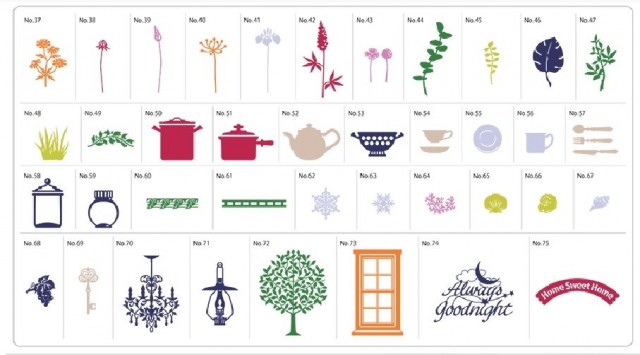 Inkluderer 75 symønstre som er ideelle for å lage veggdekaler, sjablonger, applikasjoner og mer. Du vil motta en mønsterliste med eksempler på hvordan du kan kombinere mønstre.