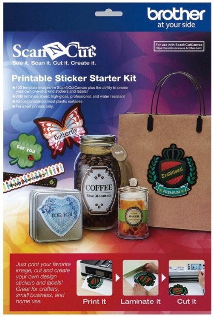Inkluderer: 3 ark med utskrivbare klistremerker, 3 ark med laminat, skrape, løfter, instruksjoner og aktiveringskort for funksjonen for utskrivbare klistremerker.