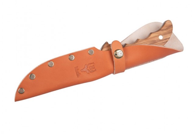 Det ergonomiske skaftet er laget av naturlig oliventre, som ikke bare gir et solid og behagelig grep, men også et eksklusivt og tidløst utseende. Oliventre er kjent for sin holdbarhet og vakre åremønster – perfekt for deg som ønsker en kniv som både fungerer og ser bra ut.