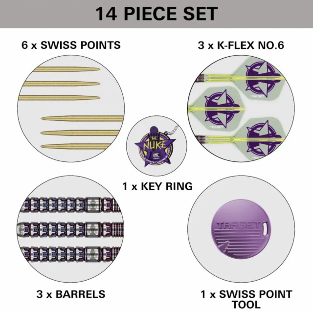 Designet fullfører mesterskapsutgaven med lilla signaturdetaljer og lasergravert «The Nuke»-logo sammen med VM-troféet – en hyllest til en av de mest spektakulære prestasjonene i moderne dart.