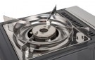 Mobil gasskomfyr med integrert piezo-tenning og termoelement for flammesikkerhet. Overdelen og gasspatrondekselet er laget av slitesterkt og lettstelt rustfritt stål. Optimal effekt er garantert ved hjelp av en brenner med doble flammer. Egnet gasspatron er G03-21 (tilbehør). Gasskjøkken.
