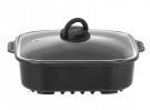 Firkantet aluminiumsgryte med non-stick belegg, integrerte håndtak og praktisk glasslokk. Den spesialdesignede bunnen garanterer et sikkert grep på alle Devil LPG-kjøkken. Høykvalitetskonstruksjon med kanter som forhindrer deformasjon forårsaket av varme.
