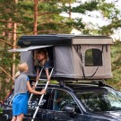 Takteltet Roof Toptent 2.0 bygger ut ditt kjøretøy med et ekstra soverom! Teltet er tilpasset for personbiler, SUV, Crossbusser og mindre bobiler. Versjon 2.0 er forberedt på å bli supplert med isolerende vegger (M80-33B.01) som er hengt på innsiden av veggene. Roof Toptent monteres smidig på takrekkverket (inngår ikke). Overnatting forberedes enkelt med noen enkle håndgrep gjennom å åpne teltboksen og løfte opp taket med hjelp av gassdemper. Toptent har døråpninger på begge sider og ventilasjon på gavlene. Teltet leveres med monteringsbeslag, teleskopisk aluminiumstige med max lengde 2 meter og 1 st madrass.