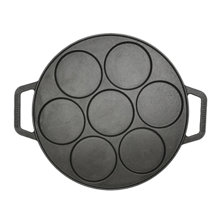Universal støpejernspanne til pannekaker, ulike typer biffer, egg, omeletter m.m. Pannen har syv runde stekeflater hvor du raskt og enkelt kan steke porsjoner til flere personer. Universalkjelen er egnet for gassbrennere, elektriske griller og åpen ild. Støpejernspanna har gode stekeegenskaper, varmes raskt opp, holder på varmen lenge og tåler høy varme.