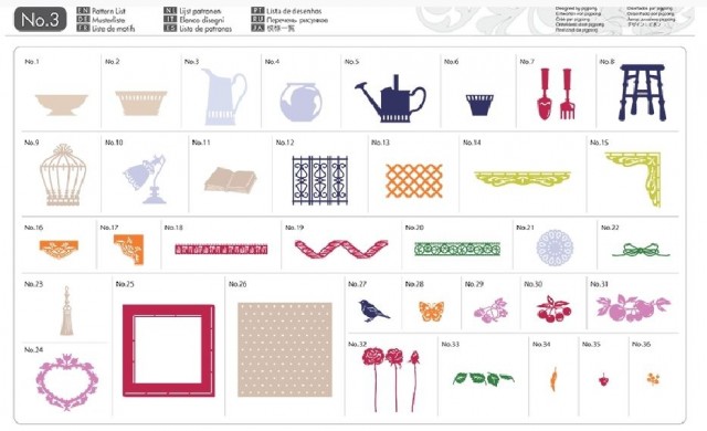 Inkluderer 75 symønstre som er ideelle for å lage veggdekaler, sjablonger, applikasjoner og mer. Du vil motta en mønsterliste med eksempler på hvordan du kan kombinere mønstre.