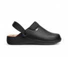 Zueco med justerbar hælrem, laget av teknisk pustende mikrofiber med polstring over vristen for å unngå gnagsår. Rett lest med avrundet tåparti. Anatomisk innersåle trukket i teknisk mikrofiber D’COVER OEKO-TEX® og metatarsalbue for økt komfort. Kilesåle i polyuretan med bikubemønstret, sklisikker dobbeltdensitetssåle, laget av en kombinasjon av polyuretan og TPU for bedre grep. Egnet for kald vask.