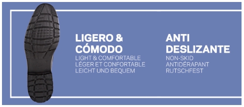 Passer for: helsepersonell, renhold, servering, kontor og andre yrker med behov for lette og pålitelige arbeidssko.