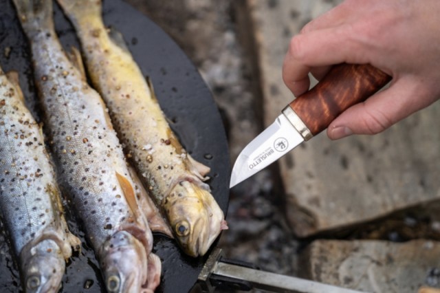 Brusletto Haugastøl er en liten allround kniv som kan brukes til det aller meste. Knivbladet er bredt og rettslipt, som gir en fin innsving mot knivspissen. Denne kniven passer veldig godt for deg som ønsker full kontroll på kniven i bruk eller foretrekker et kortere knivblad. Mellom knivbladet og skaftet er det en holk i nysølv. Knivbladet er 2,2 mm som gir en solid følelse i bruk. Kniven egner seg godt sammen med tennstål på grunn av det korte og solide bladet.