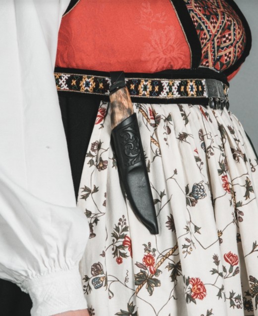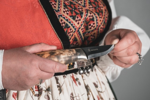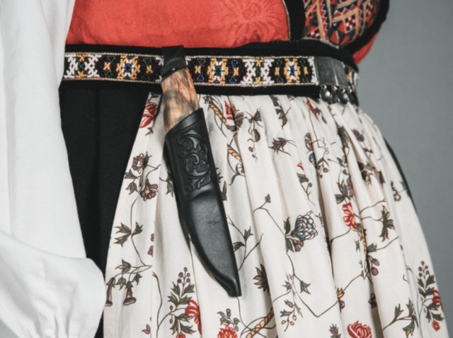 Dersom du har en bunad hvor du fester bunadskniven med knapp, så kan du lage et snitt på baksiden av hempen for å henge kniven på knappen.