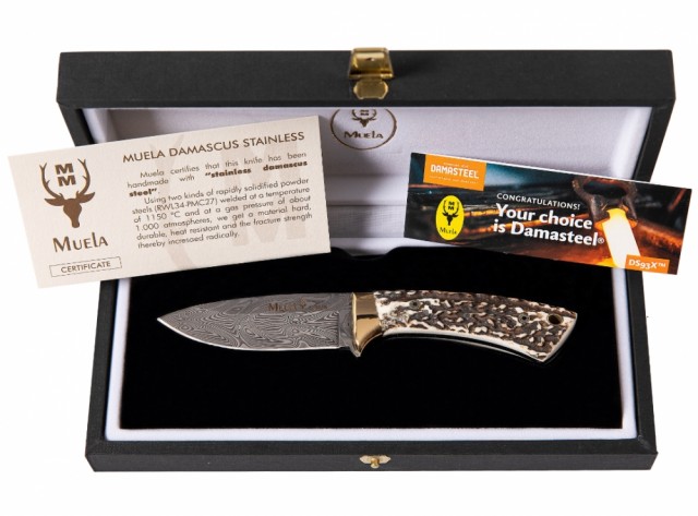 Håndtaket består av ekte hjortehorn med messingdetaljer, som gir et naturlig, eksklusivt og ergonomisk uttrykk. Denne kombinasjonen av edle materialer og presisjonshåndverk gjør Muela COL-7DAM til et kunstverk i stål – skapt for dem som krever det ypperste.