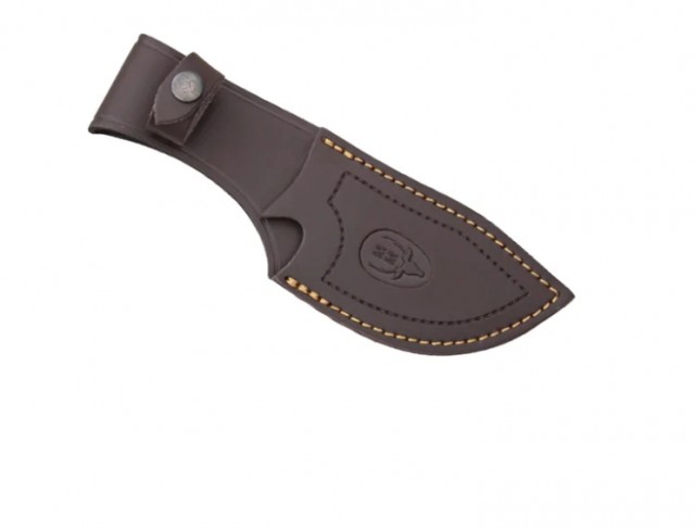 Det vakre skaftet i ekte oliventre gir et varmt og naturlig uttrykk, samtidig som det ligger stabilt og godt i hånden – selv under krevende forhold. Kniven leveres med en håndsydd skinnslire med beltefeste, slik at du alltid har den trygt og lett tilgjengelig under jakt og friluftsliv.