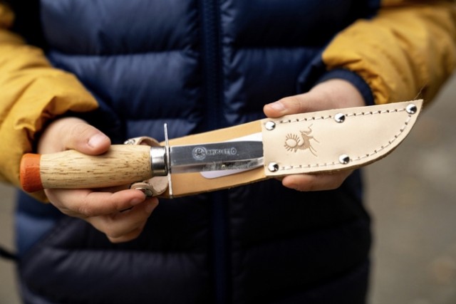 Kniven er laget i slitesterke materialer som tåler aktiv bruk ute i naturen. Den leveres i en flott gaveeske, og inneholder også en inspirasjonsbrosjyre som viser hvordan barnet kan lage sin egen seljefløyte – en morsom og lærerik introduksjon til tradisjonelt friluftshåndverk.